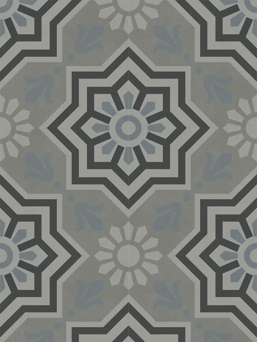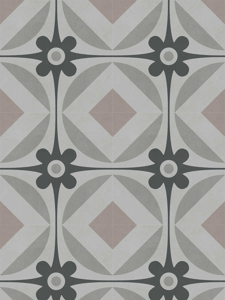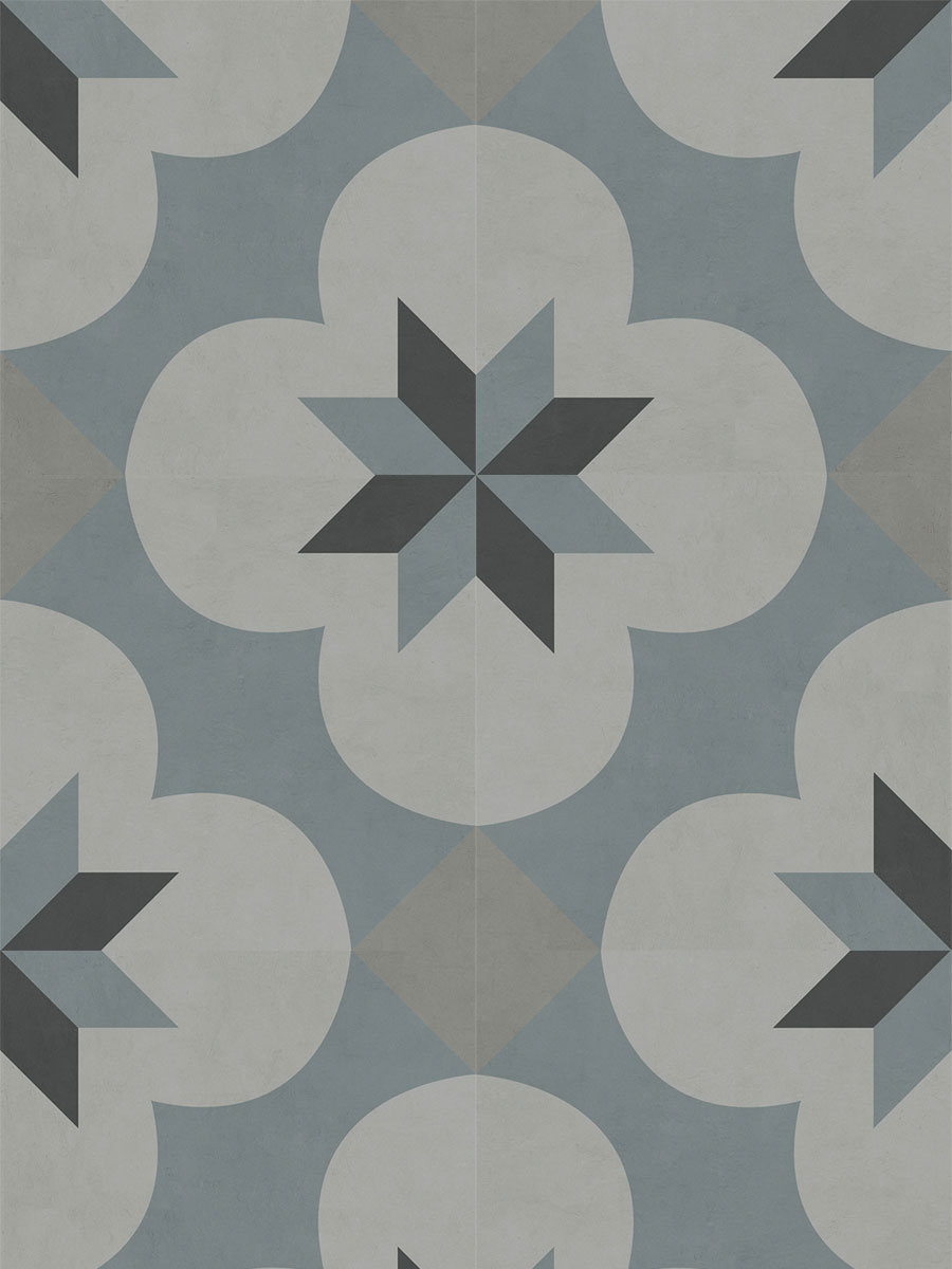 Kolme neutraalia sävyvaihtoehtoa ja koristekuviot mahdollistavat yksilölliset sommitelmat seiniin ja lattioihin – myös ulkotiloihin.